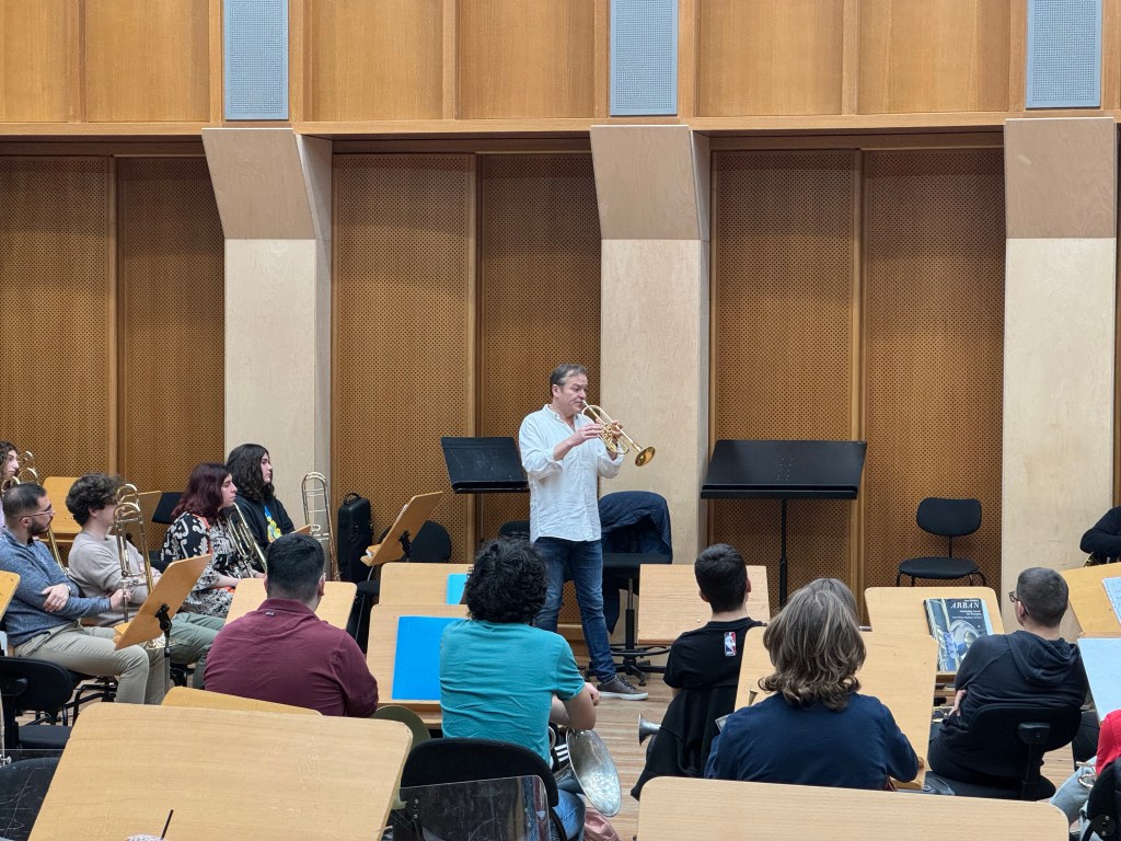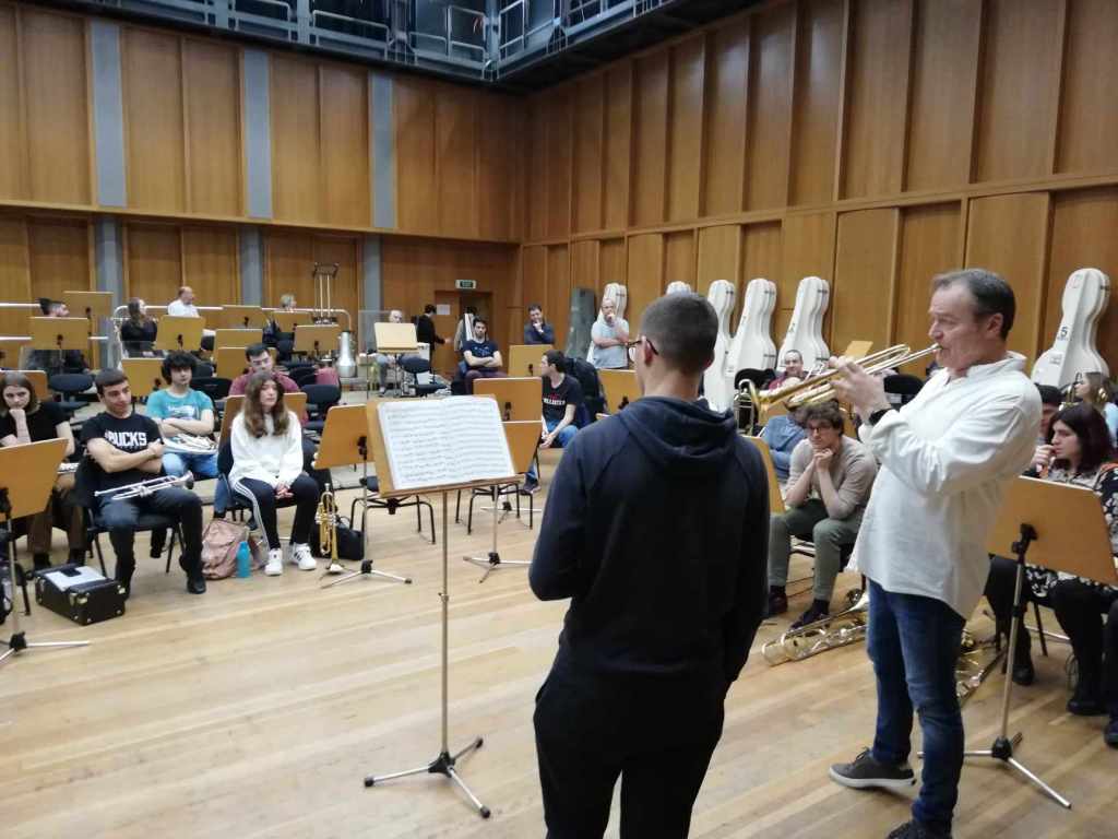 On Sunday, the 25th of February 2024, a masterclass was conducted with Gábor Tarkövi (principal trumpet at the Berlin Philharmonic 2004 – 2019, professor at the Berlin University of the Arts). This event took place as part of the Brass Workshop, which was co-organized by the Athens State Orchestra and the Philippos Nakas Conservatory.